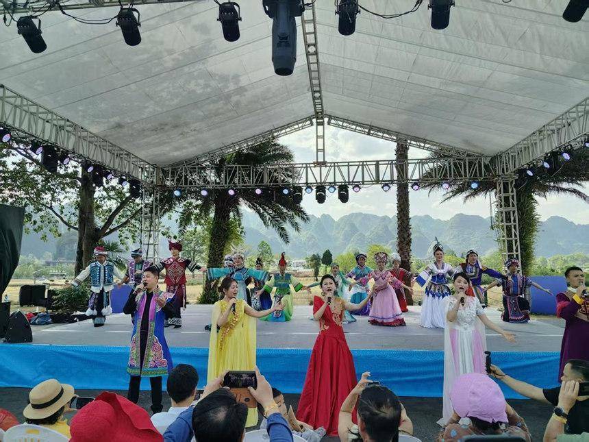 峰林深处歌飞扬,民族团结花正开。以文化人,以艺通心。当中华文化的种子埋入基层的沃土,中华民族共同体意识的根就会越扎越深。(文/图 陈湘飚)