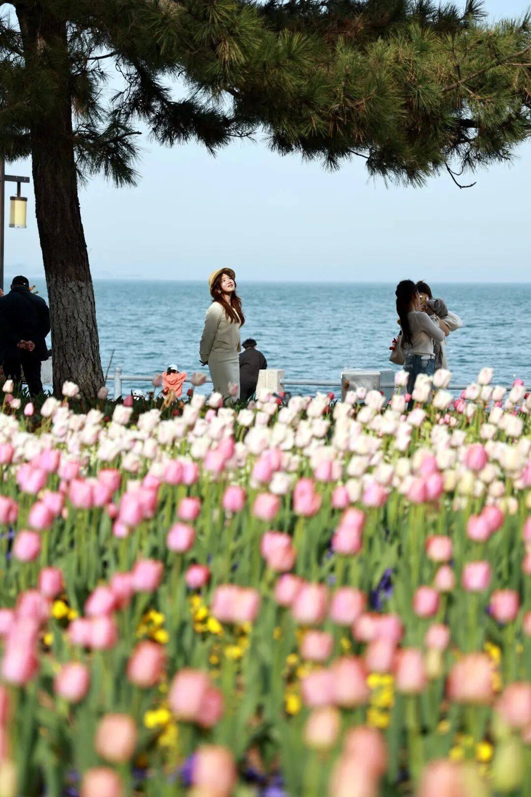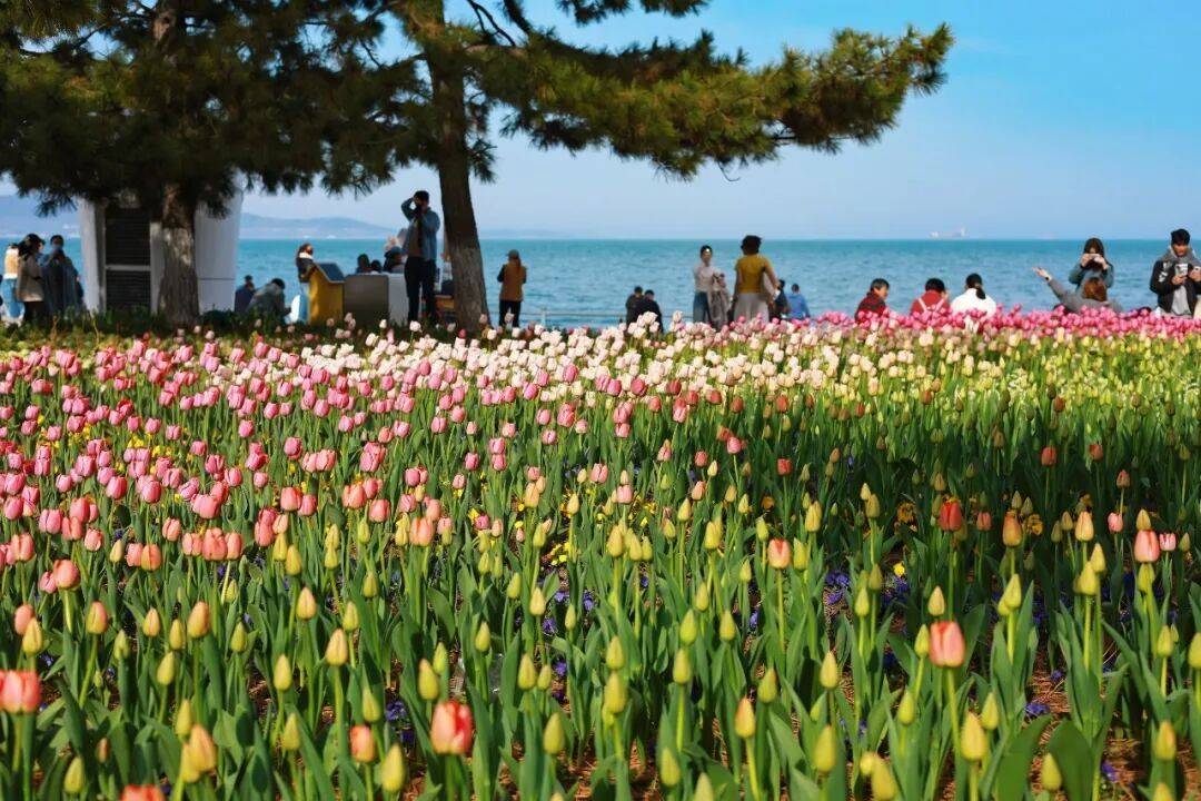 从威海公园出发,收集郁金香的温柔粉、明黄与淡紫,看这片色彩与蔚蓝大海碰撞出的浪漫;
